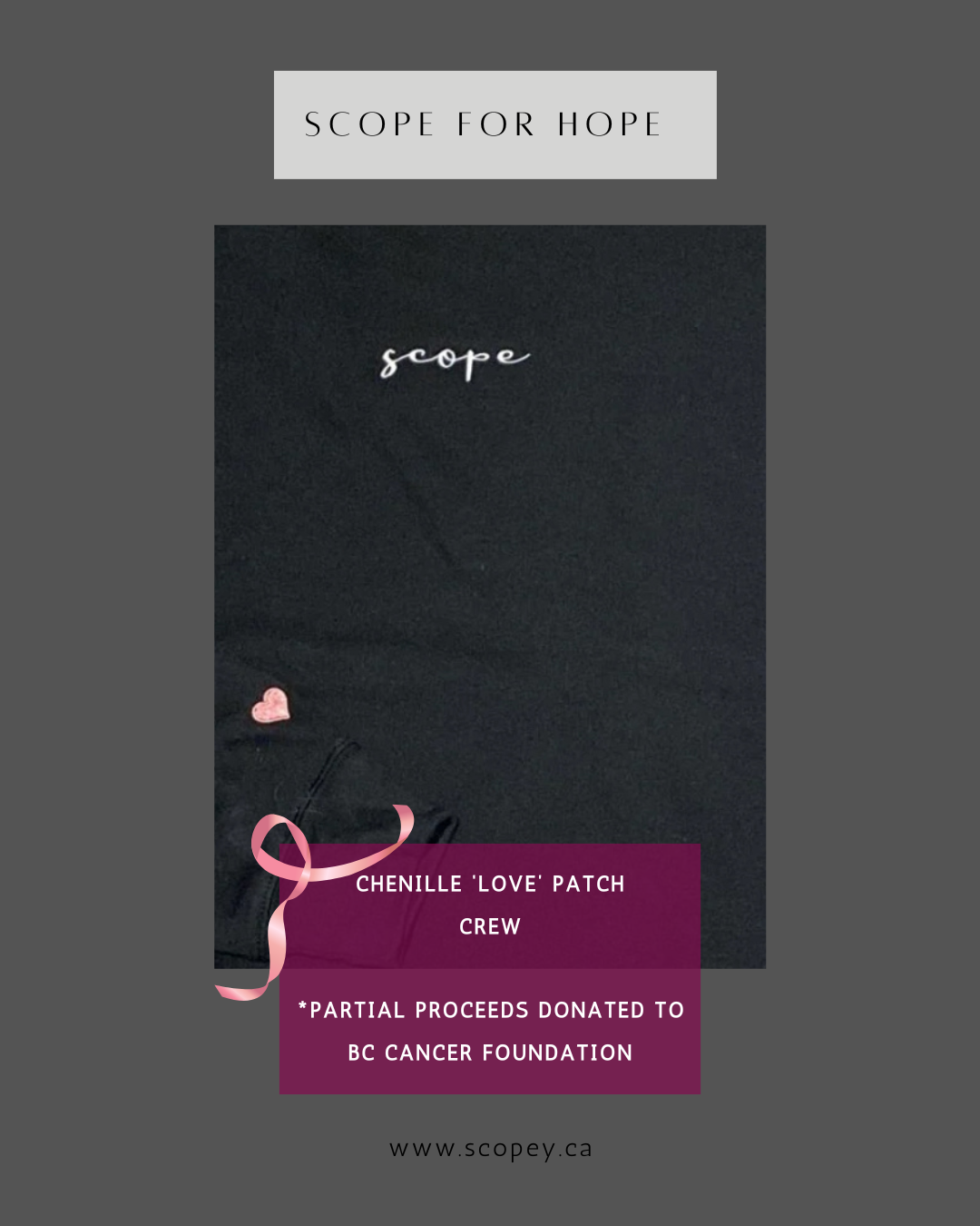 A classic unisex pullover crewneck sweatshirt in comfy, super-soft fleece designed for warmth and breathability. Featuring an on-trend drop shoulder seam and unisex retail fit. Finished with ribbed cuffs and waistband. Branded with embroidered Scope on center chest and heart on the sleeve. *Unisex Sizing.