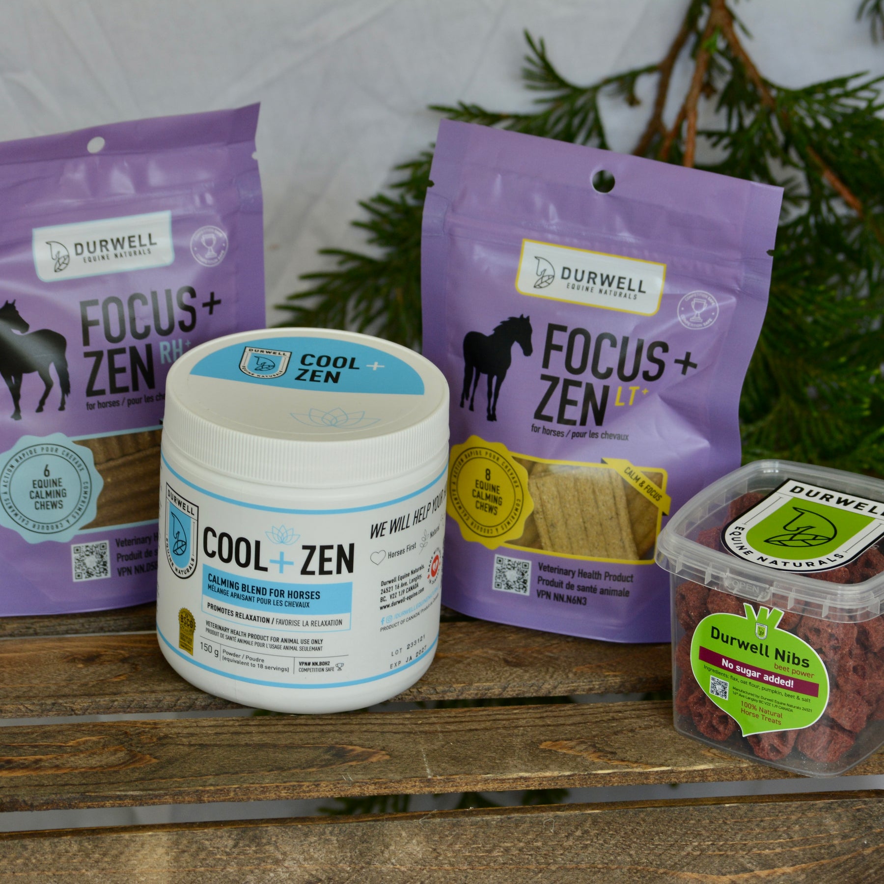 Great introduction to our calming line! Includes a bag of Focus + Zen LT+ calming chews (8), a bag of Focus + Zen RH+ calming chews (6), trial size of Cool + Zen and a bag of Nibs, our new healthy horse treats. All products are tested for banned substances and certified DRUG FREE. For details on the products please see individual product pages!